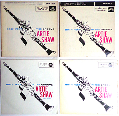 RCA also released EPs of the Joe Newman Octet’s “I’m Still Swinging” LP at about the same time as the Count Basie set on three separate EPs. The only difference in the cover art was a change from red to blue in the colour . Similarly, the company released a double gatefold EP of the Artie Shaw “Both Feet in the Groove” LP. According to Guy Minnebach there were several different tints of blue on the EP covers.