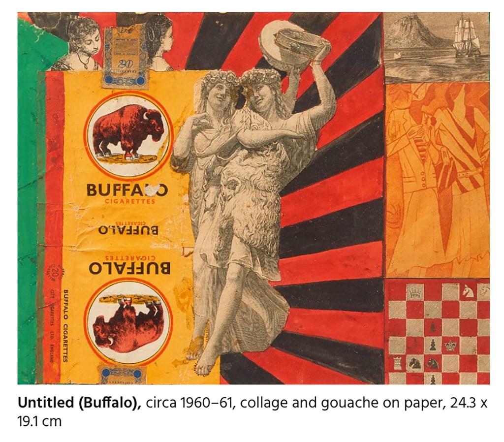 So, Blake painted his “Valentine (for Pauline Boty)” early on their relationship. Boty must have been inspired by Blake’s collages, and she must have been a muse for him. Her early collages seem to presage many of Blake’s more recent ones.